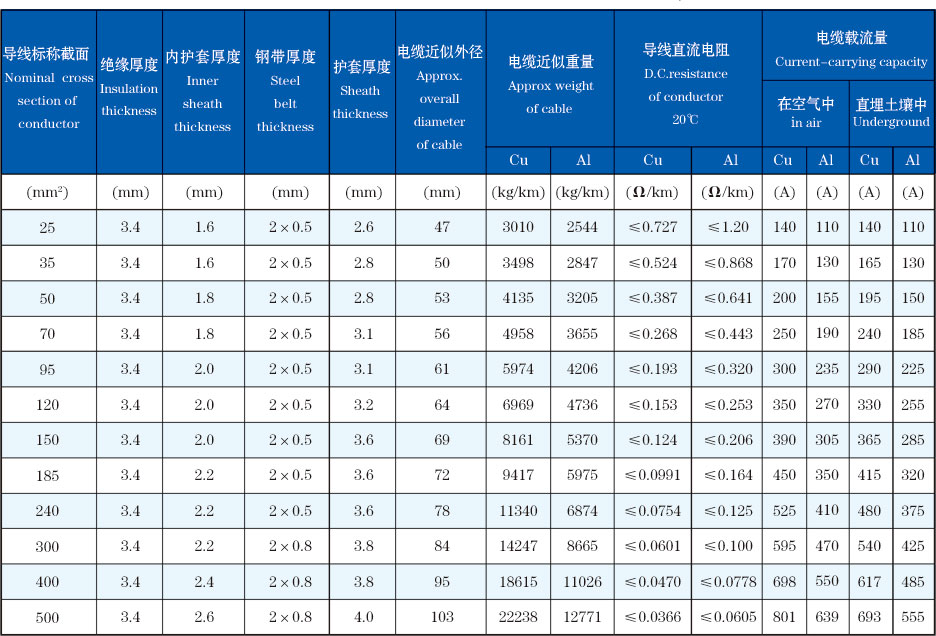 Three-core XLPE insulated steel belt armoured PVC sheathed power cable