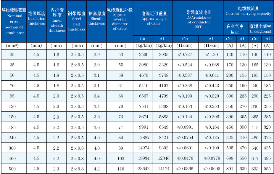 Three-core XLPE insulated steel belt armoured PVC sheathed power cable