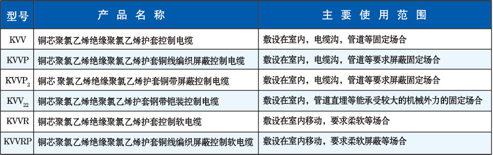 1.聚氯乙烯絕緣和護套控製電纜