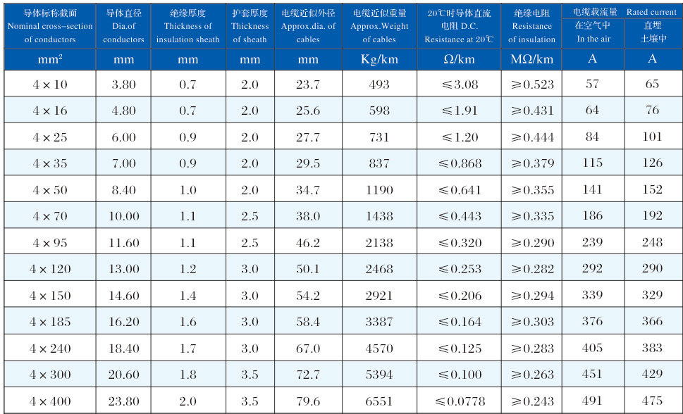YJLHV82 (ACWU90) 0.6/1kV 四芯交聯聚乙烯絕緣鋁合金帶連鎖鎧裝聚氯乙烯護套鋁