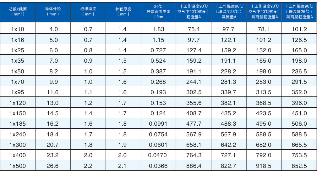 型號:FA-BTGYRZ(FA-BTLHYZ)規格:1x10-1x500mm2 額定電壓:0.6/1KV
